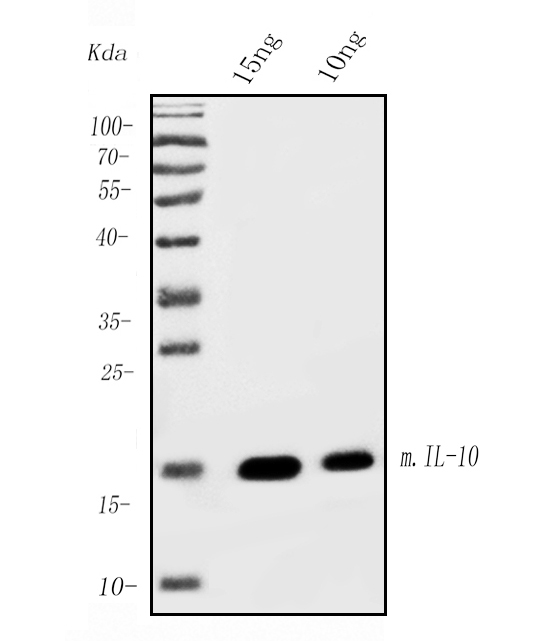 IHC analysis of IL10 using anti-IL10 antibody (A00021-3).