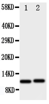 After electrophoresis, proteins were transferred to a membrane. Then the membrane was incubated with rabbit anti-CXCL1 antigen affinity purified polyclonal antibody (A00533) at a dilution of 1:1000 and probed with a goat anti-rabbit IgG-HRP secondary antibody (Catalog # BA1054). The signal is developed using ECL Plus Western Blotting Substrate (Catalog # AR1197). A specific band was detected for CXCL1 at approximately 10 kDa.