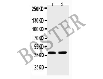 After electrophoresis, proteins were transferred to a membrane. Then the membrane was incubated with rabbit anti-GJA5 antigen affinity purified polyclonal antibody (BA1593) at a dilution of 1:1000 and probed with a goat anti-rabbit IgG-HRP secondary antibody (Catalog # BA1054). The signal is developed using ECL Plus Western Blotting Substrate (Catalog # AR1197). A specific band was detected for GJA5 at approximately 40 kDa. The expected band size for GJA5 is at 40 kDa.