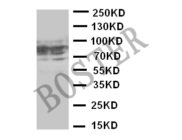 After electrophoresis, proteins were transferred to a membrane. Then the membrane was incubated with rabbit anti-TRPV3 antigen affinity purified polyclonal antibody (BA2875-2) at a dilution of 1:1000 and probed with a goat anti-rabbit IgG-HRP secondary antibody (Catalog # BA1054). The signal is developed using ECL Plus Western Blotting Substrate (Catalog # AR1197). A specific band was detected for TRPV3 at approximately 100 kDa. The expected band size for TRPV3 is at 91 kDa.