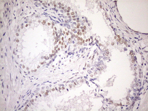 Immunohistochemical analysis of paraffin-embedded human prostate, using Androgen Receptor Antibody.