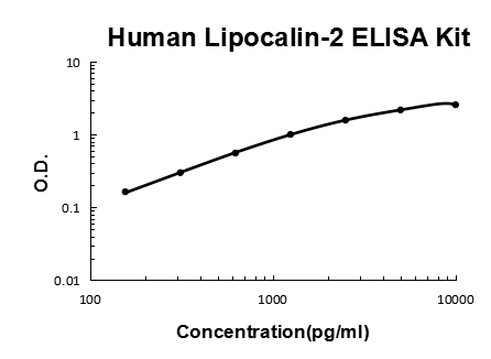 Lipocalin-2(LCN2), also known as NGAL, is a protein associated with neutrophil gelatinase.1 The LCN2 gene is located at 9q34 and contains 7 exons.2 The 25-kD LCN2 protein is believed to bind small lipophilic substances such as bacteria-derived lipopolysaccharide(LPS) and formylpeptides and may function as a modulator of inflammation. NGAL tightly binds bacterial catecholate-type ferric siderophores through a cyclically permuted, hybrid electrostatic/cation-pi interaction and is a potent bacteriostatic agent in iron-limiting conditions.3 The primary LCN2 transcript is 3,696 nucleotides long, and the processed transcript is 809 nucleotides long.4 LCN2 expression in adult bone marrow, uterus, prostate, salivary gland, stomach, appendix, colon, trachea, and lung, and in fetal spleen and lung.The standard product used in this kit is recombinant human NGAL, consisting of 178 amino acids with the molecular mass of 22KDa.
