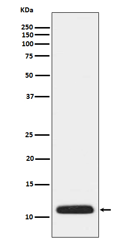 \After electrophoresis, proteins were transferred to a membrane. Then the membrane was incubated with rabbit anti-APOC3 antigen affinity purified polyclonal antibody (PB1097) at a dilution of 1:1000 and probed with a goat anti-rabbit IgG-HRP secondary antibody (Catalog # BA1054). The signal is developed using ECL Plus Western Blotting Substrate (Catalog # AR1197). A specific band was detected for APOC3 at approximately 12-14 kDa. The expected band size for APOC3 is at 11 kDa.